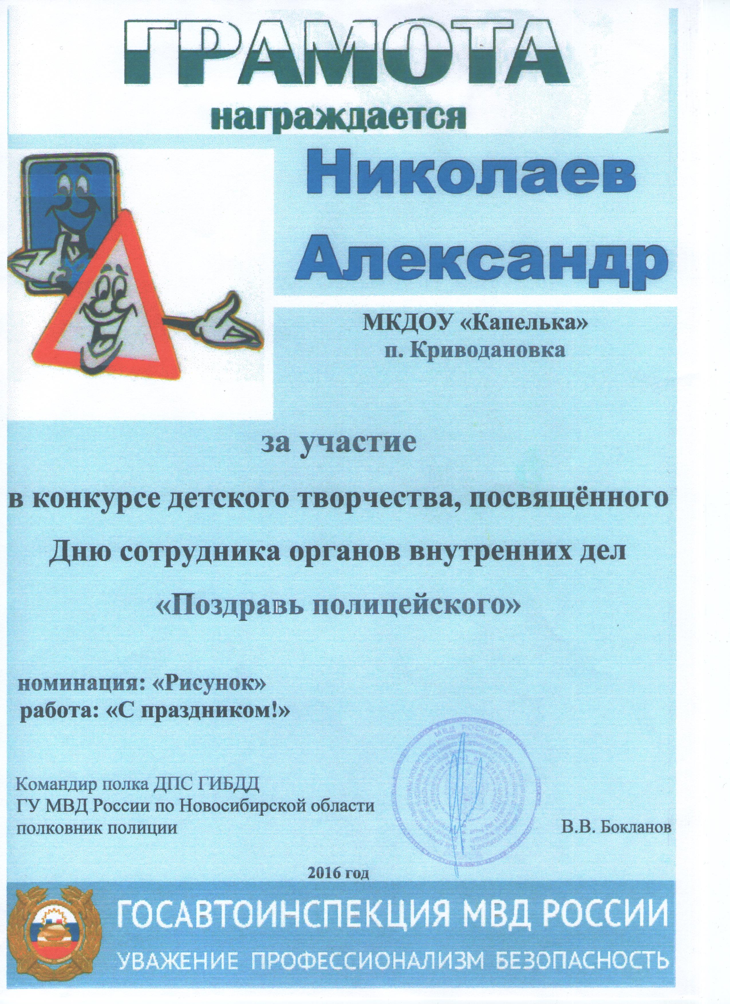 | Областной конкурс детского рисунка к международному дню детской книги "День рождения Незнайки" | Районный уровень | 15.02.2019 | 20.03.2019 | Сертификат участника | Файл (JPG; 76Кб) | Файл (JPEG; 2Мб) |
